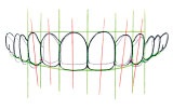 A tracing technique is used to design an smile that possesses improved alignment and proportion.The light gray lines represent the original teeth while the dark gray signify the proposed design as it fits withinan ideal framework.